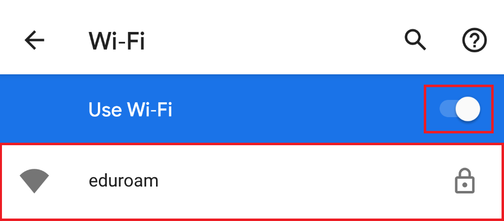 - Make sure Wi-Fi is On, then tap eduroam from the list of available wireless networks.